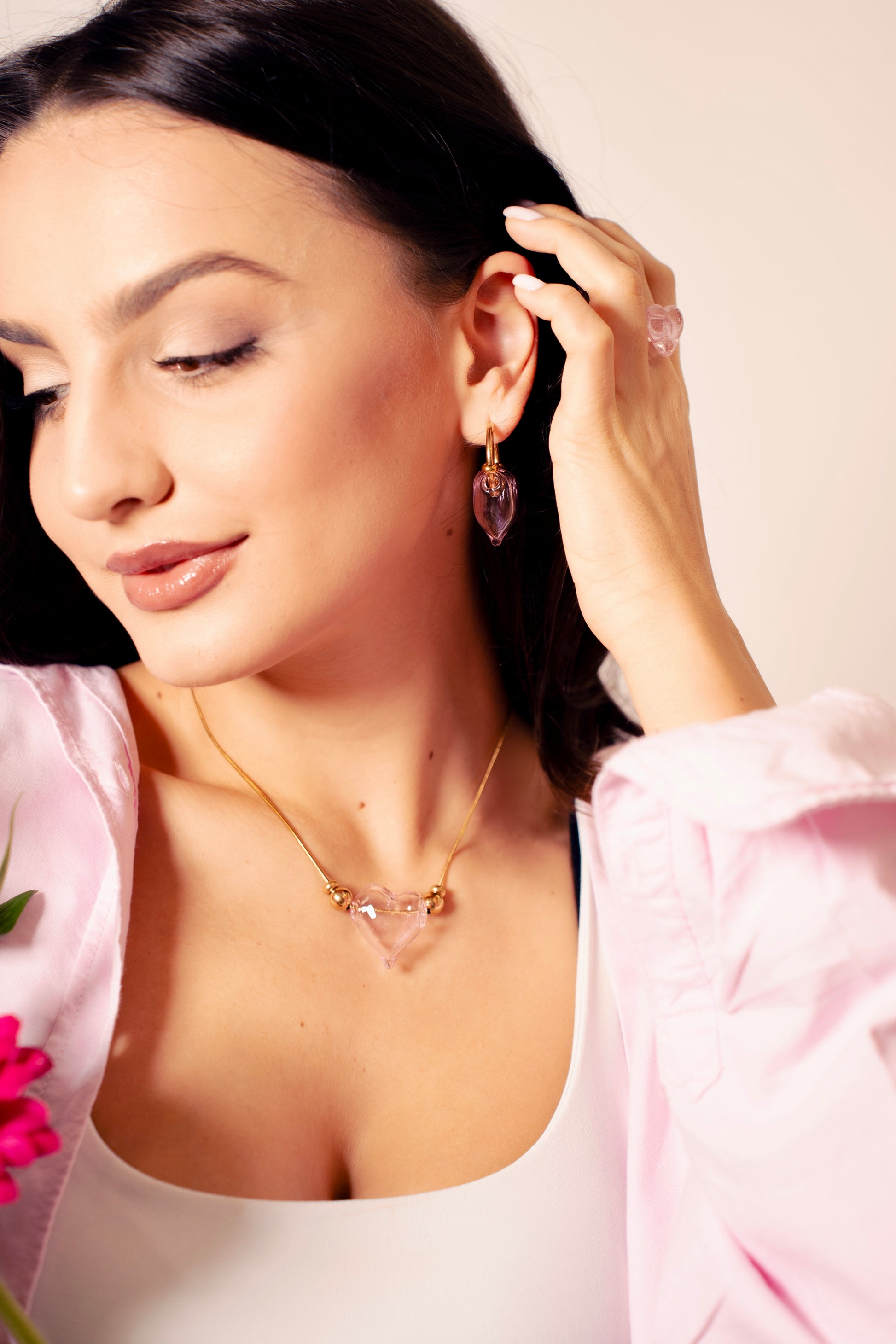 Das Rose Glow Glas Schmuck Set verbindet feine Glasbläserkunst mit moderner Schmuckgestaltung.