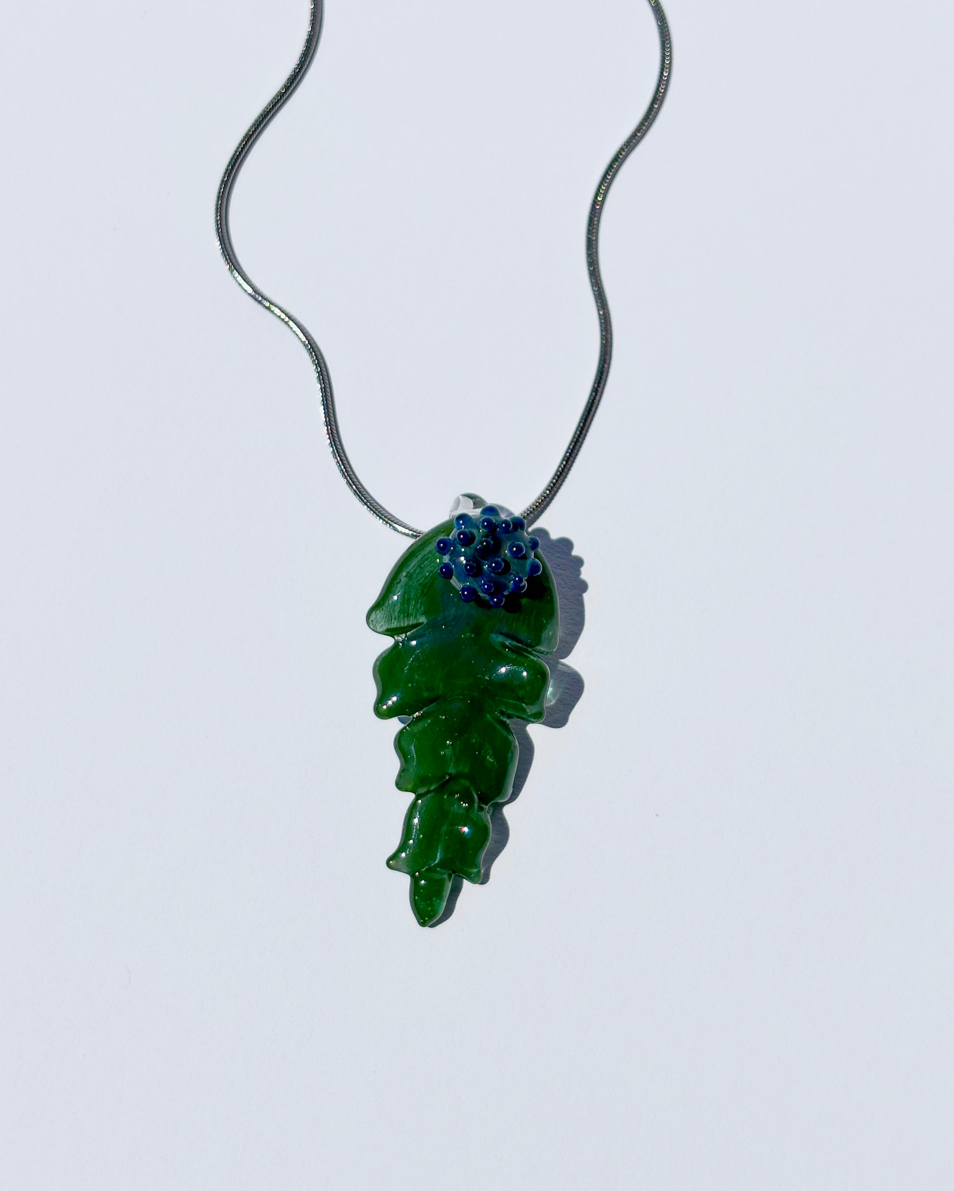 Der Grünes Blatt Anhänger ist ein handgefertigtes Schmuckstück aus hochwertigem Borosilikatglas, inspiriert von der klaren, organischen Form eines Blattes. Die geschwungene Silhouette und das lichtdurchlässige grüne Glas verleihen dem Anhänger eine ruhige, natürliche Ausstrahlung.