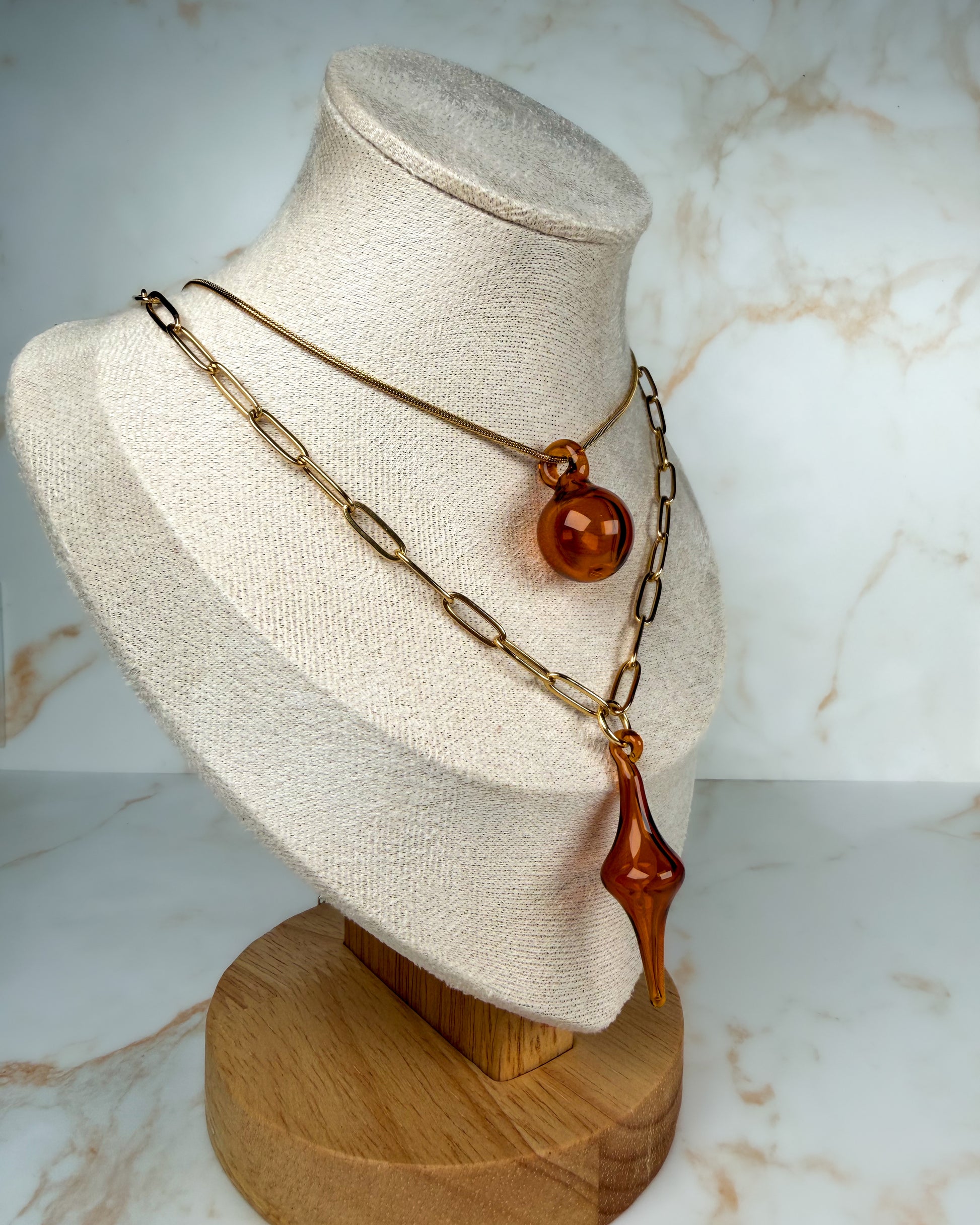 MORPHOS.AMBER · Layer Kette (40 cm + 50 cm, Edelstahl vergoldet)