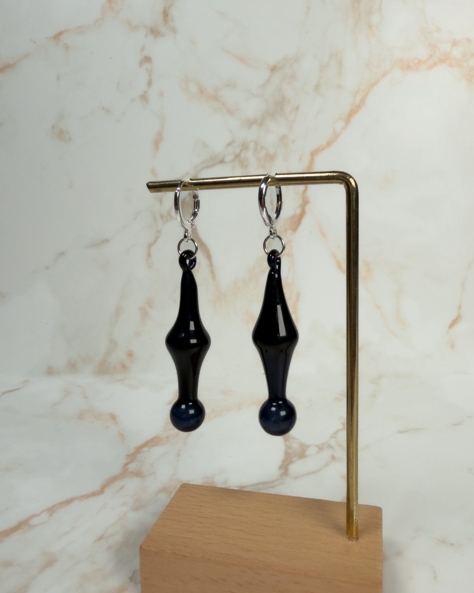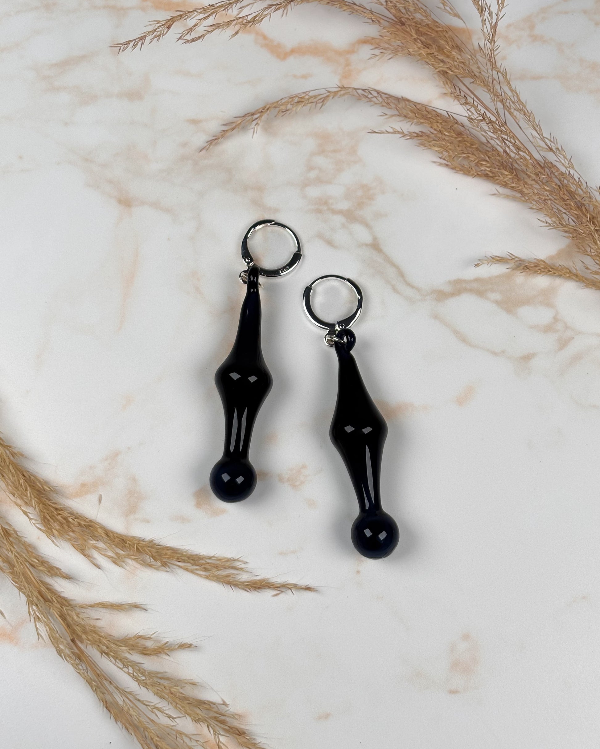 Alle Glaselemente werden aus hohl geblasenem Borosilikatglas gefertigt. Der innere Hohlraum ist ein bewusstes Gestaltungselement und verleiht den Formen Volumen ohne Schwere. Die schwarze Färbung wirkt grafisch und konzentriert und verstärkt die architektonische Klarheit der Formen.
