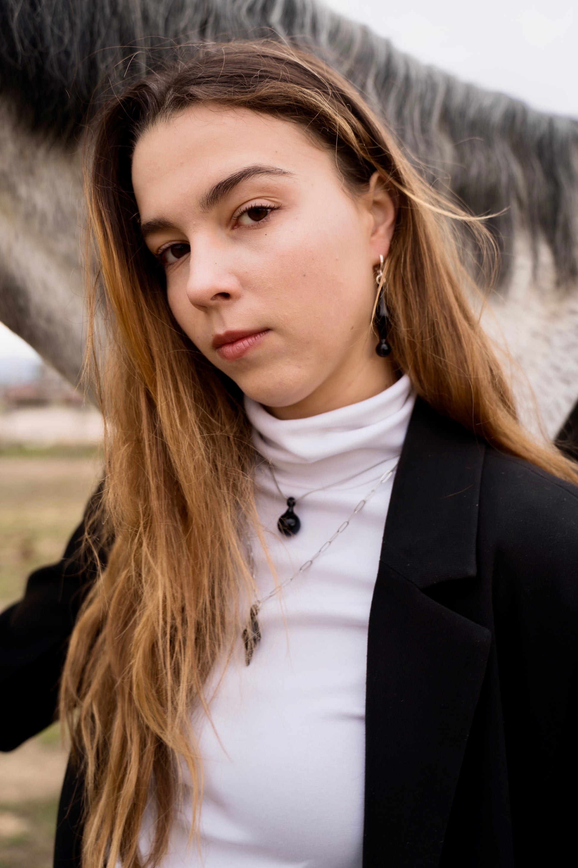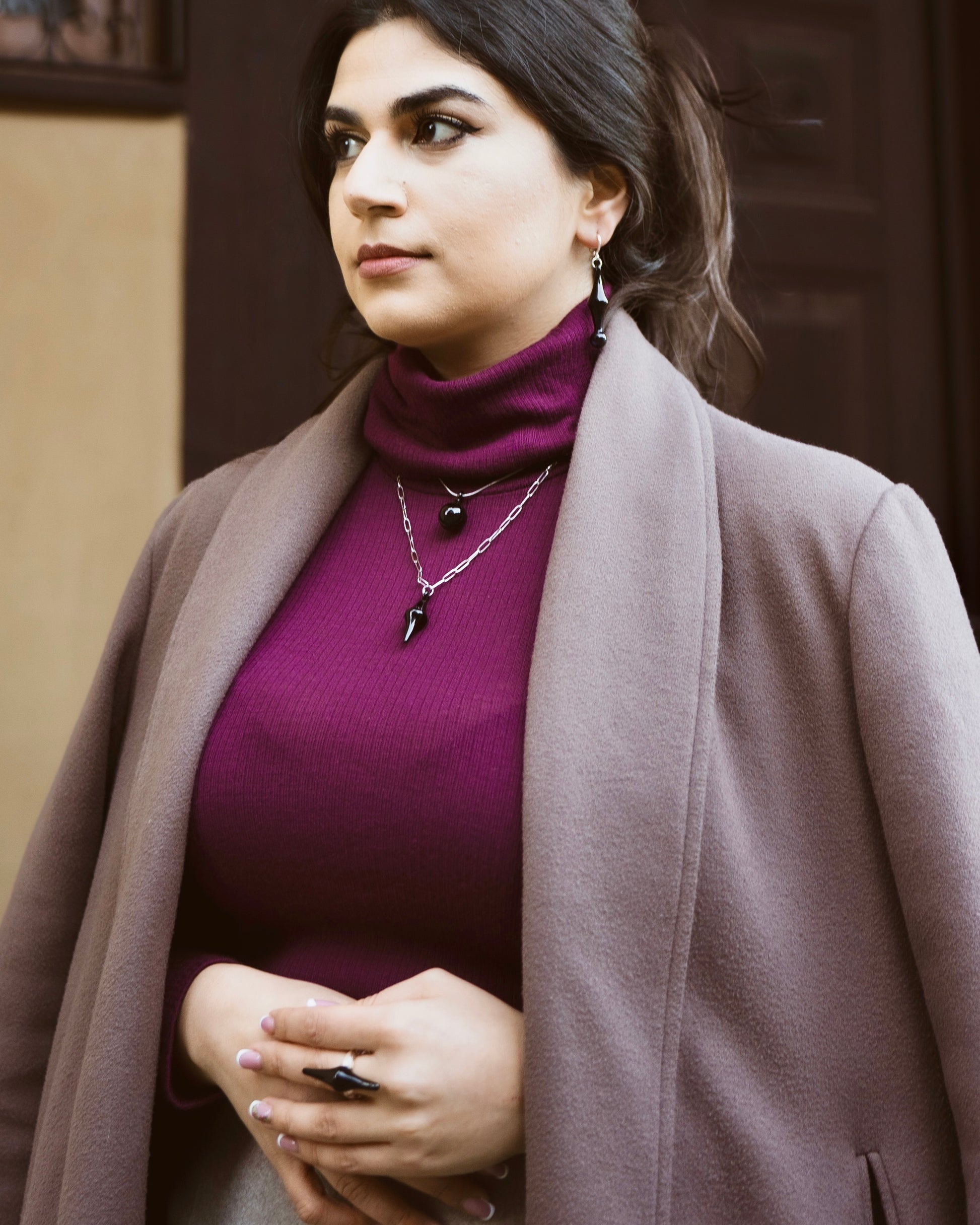 Das Set besteht aus Ohrringen, einer Layer Kette und einem Ring, die gemeinsam ein geschlossenes System aus Volumen, Balance und geometrischer Spannung bilden. Kugel und dreidimensionaler Rhombus definieren den skulpturalen Charakter der Kollektion und treten in einen ruhigen, präzisen Dialog.