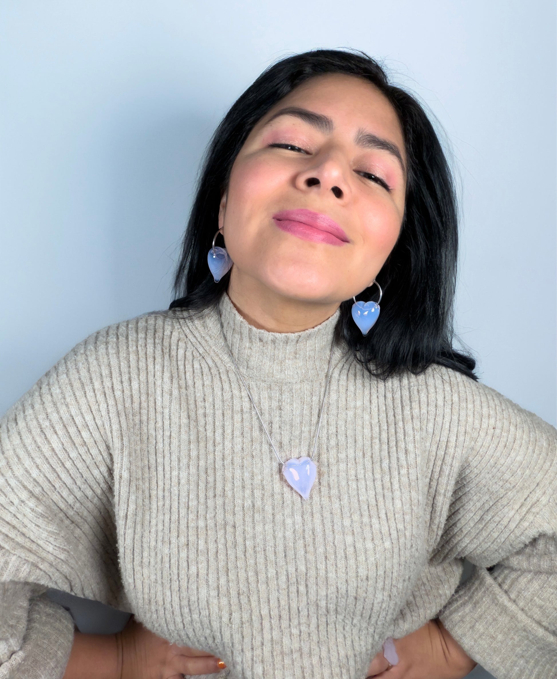 Das Set besteht aus Creolen mit Glasherzen, einer Halskette mit Herzanhänger sowie einem Glasring. Alle Metallteile sind aus Edelstahl in Silberfarbe gefertigt, reduziert, langlebig und zeitlos.