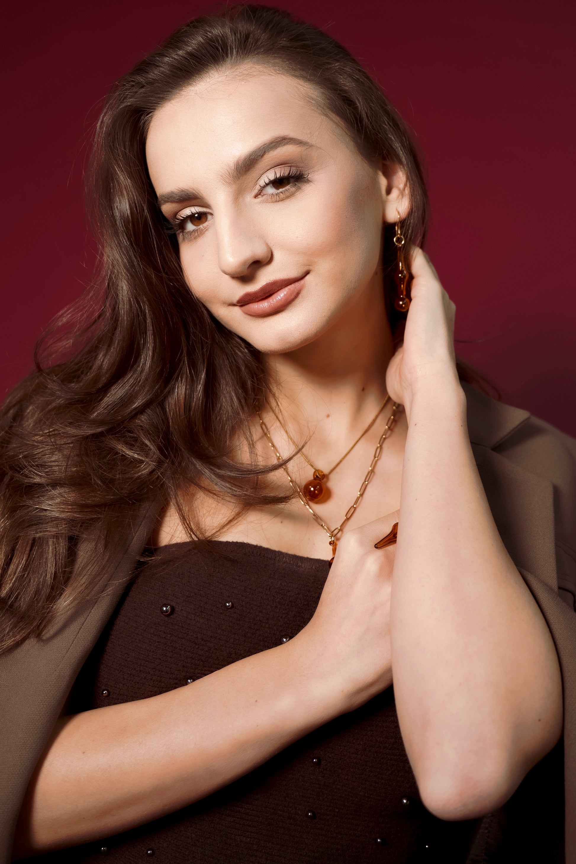Der warme Amberton interagiert intensiv mit Licht und betont die Transparenz des Glases. Er unterstreicht den skulpturalen Charakter der Form, ohne dekorativ zu wirken, und verleiht den Ohrringen eine klare, zeitlose Präsenz.