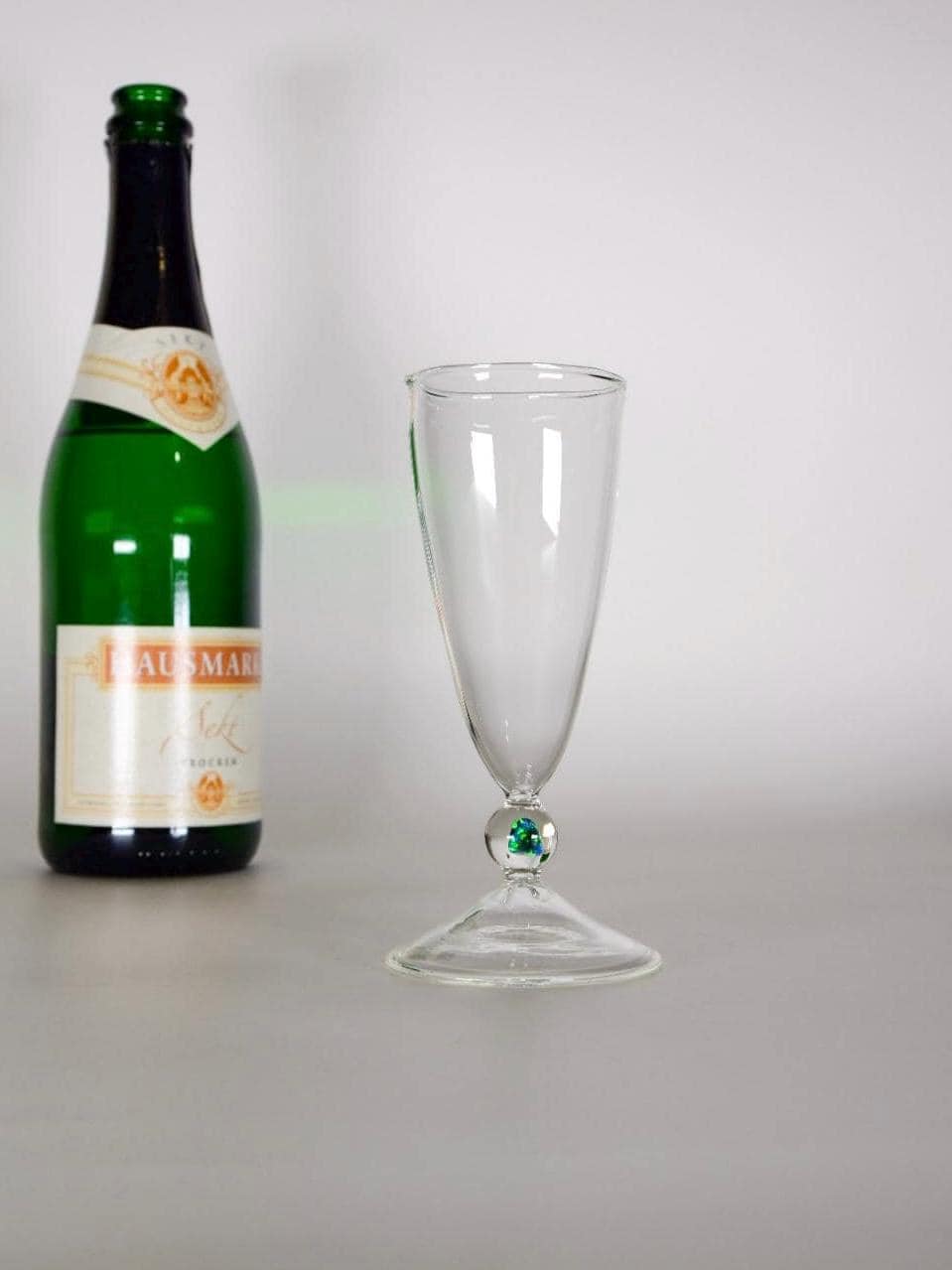 Dieses exklusive Sektglas wird in meinem Atelier in Deutschland in traditioneller Handarbeit gefertigt. Ich verwende hochwertiges Borosilikatglas, das für seine besondere Klarheit, Langlebigkeit und hohe Temperaturbeständigkeit bekannt ist.