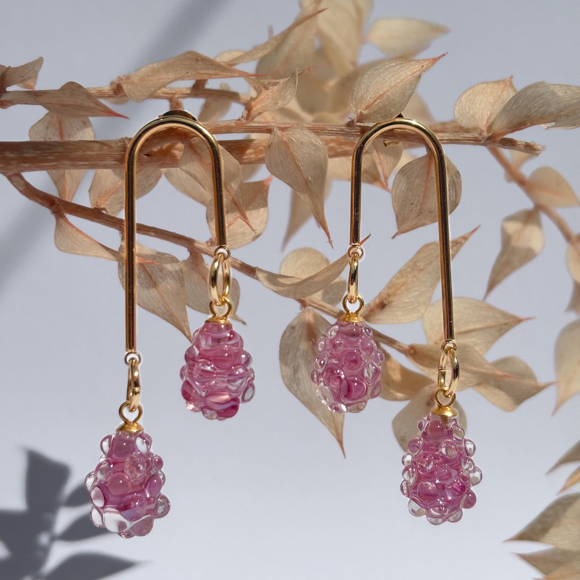 Die leuchtenden Rosatöne des Murano-Glases fangen das Licht auf besondere Weise ein, während die klaren Glaskugeln an der Oberfläche für subtile Reflexionen sorgen. Das Ergebnis ist ein organischer, eleganter Look verspielt und modern zugleich.