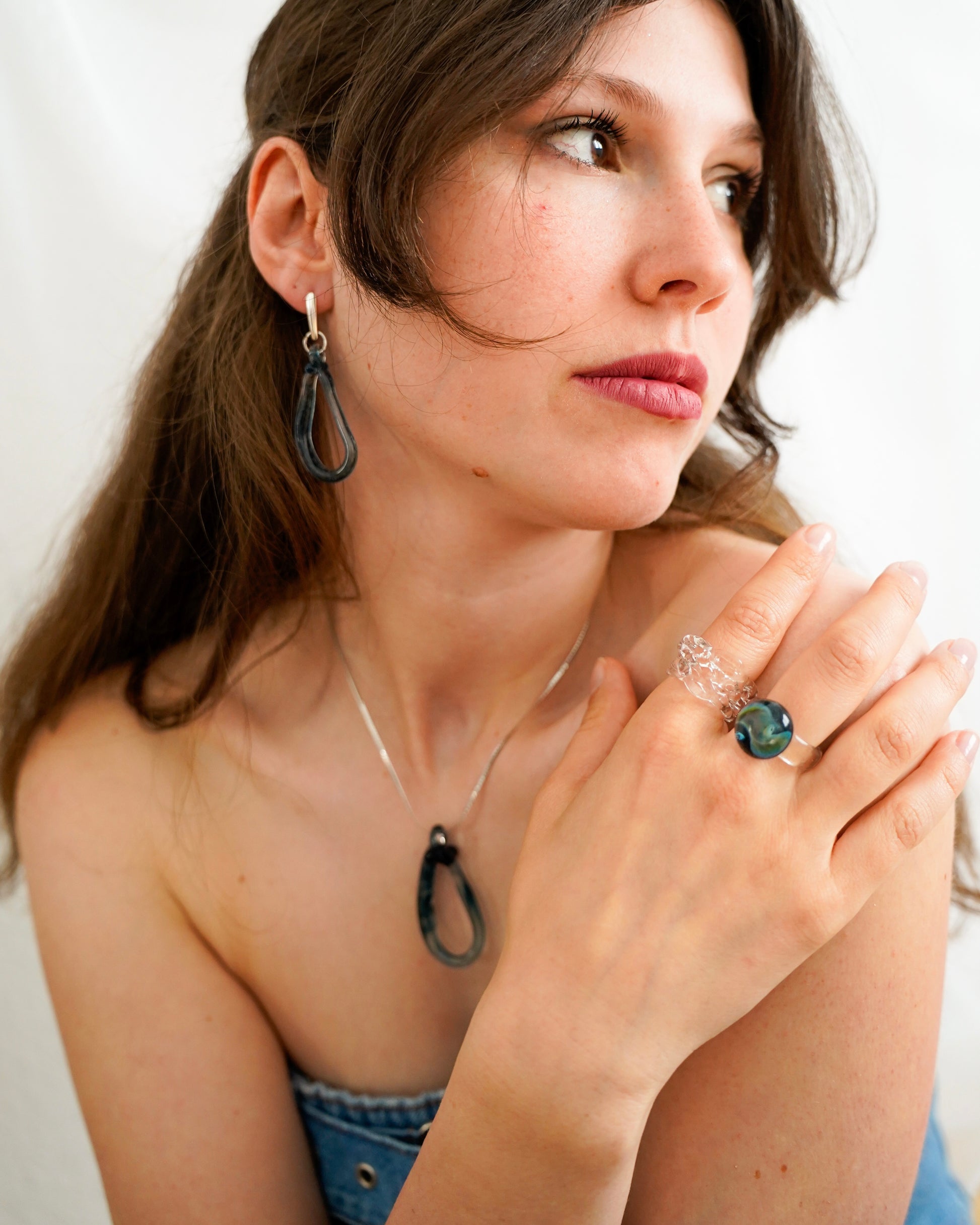 Die Pirum Earrings sind handgefertigte Statement-Ohrringe aus tiefblauem, transparentem Borosilikatglas. Das Pirum-Design (lat. Birne) ist von natürlichen, fließenden Formen inspiriert und verbindet klare Linien mit moderner Glaskunst.