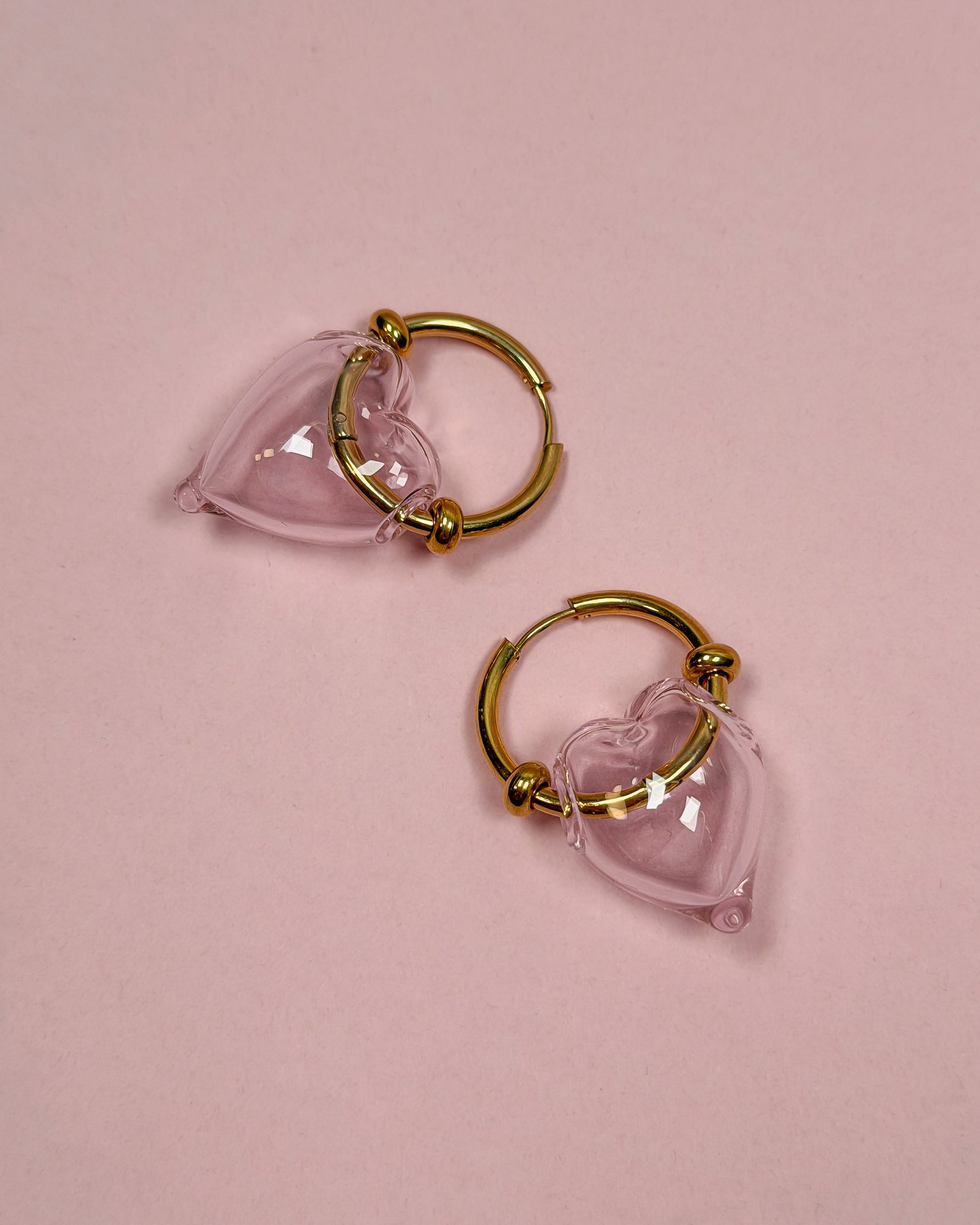 Getragen an goldfarbenen Edelstahl-Creolen wirken die Herzen schwebend und setzen warme, elegante Akzente. Ein zeitloses Schmuckstück für den Alltag oder besondere Momente.